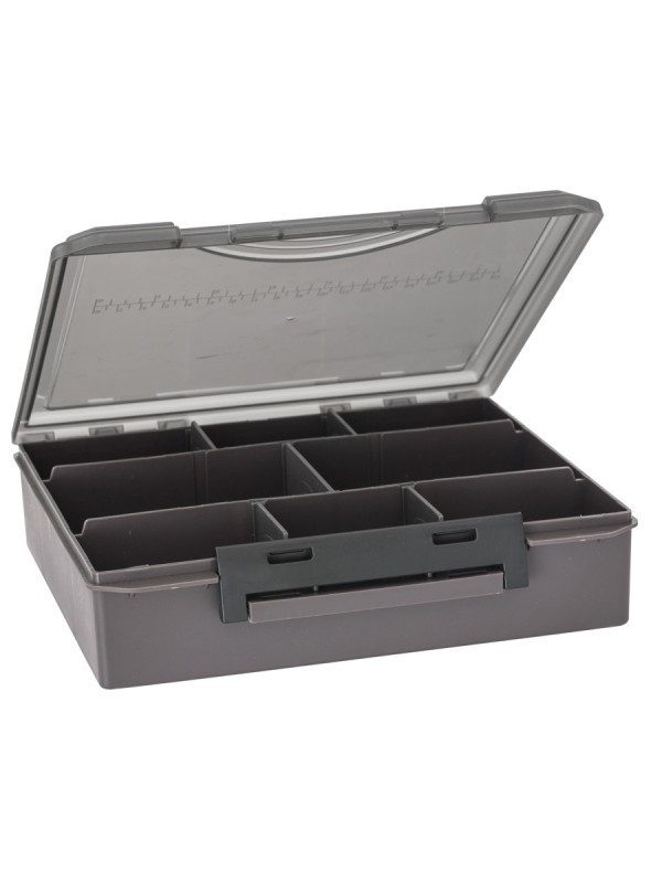 A felszerelés jól rendszerezett tárolására kialakított, 23 x 20 x 6 centiméteres doboz, melynek belső osztása igény szerint alakítható. Az apróbb kiegészítők, horgok, kapcsok és forgók elhelyezésére 4 darab 10 x 6.5 x 2.5 centiméteres doboz áll rendelkezésünkre, melyek három, négy hat, illetve nyolc fakkosak.