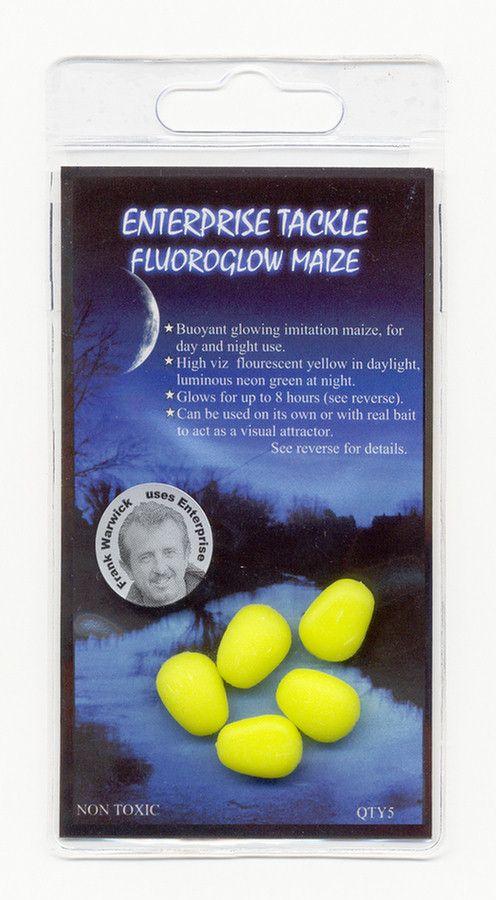 Az Enterprise Flouroglow, tehát sötétben fluoreszkáló takarmánykukorica imitációja magában hordozza a fluoreszkáló sárga szín és a sötétben világító, zöld színű adalék előnyeit. A csali a megfelelő feltöltés után képes akár 8 órán keresztül világítani. A feltöltésre a külön kapható Enterprise UV lámpa használatát javasoljuk. A műkukoricát töltsük 15 másodpercen keresztül a következő módon! Kapcsoljuk be a lámpát, és tartsuk a kukoricától 3-5 centiméter távolságra. A kukoricát lassan forgassuk minden irányba, hogy a fény mindenhol érje azt! Közvetlenül a feltöltés után a kukorica erősen világít, fénye fokozatosan gyengülve körülbelül nyolc órán át tart. A megfelelő fényerősség elérése érdekében javasolt a csalikat 3-4 óránként újratölteni! A fluoreszkáló sárga kiváló nappali színnek bizonyult különösen télen, és a világító zöld adalék felhasználásával bátran állíthatjuk, hogy sikerült megalkotni a csaliimitációk netovábbját! Kiszerelés: 5db/csomag
