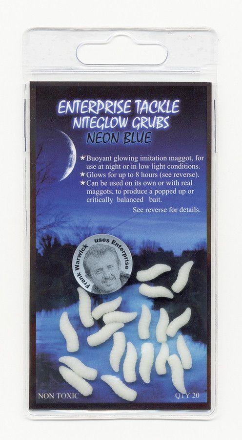 Niteglow csontkukac, a sötétben világító lárva! A hosszas kísérletezések bebizonyították, hogy a zöld és a kék színű fények a leginkább láthatóak a pontyok számára a gyenge fényviszonyok közepette. Az Enterprise Niteglow csontkukac imitációk kaphatóak mindkét színben, és a hozzáadott adalékanyagoknak köszönhetően akár nyolc órán át világítanak, amennyiben használat előtt megfelelően feltöltöttük őket.
