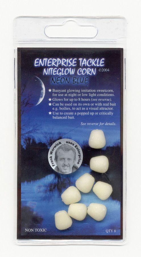 Niteglow Corn, a sötétben világító nagyméretű kukorica! A hosszas kísérletezések bebizonyították, hogy a zöld és a kék színű fények a leginkább láthatóak a pontyok számára a gyenge fényviszonyok közepette. Az Enterprise Niteglow Corn kukorica imitációk kaphatóak mindkét színben, és a hozzáadott adalékanyagoknak köszönhetően akár nyolc órán át világítanak, amennyiben használat előtt megfelelően feltöltöttük őket.