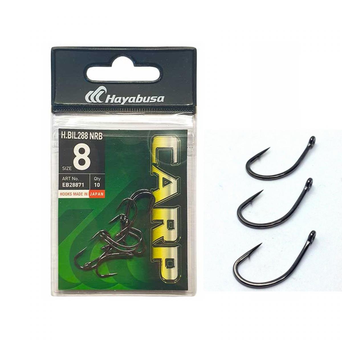 A HAYABUSA népszerű H.BIL288 horogszériáját elsősorban pontyhorgászatra fejlesztették ki. Kiválóan alkalmazható a hagyományos pontyozó módszerek mindegyikénél, de a bojlis horgászatok során is. Ezt a horgot akadók közelében is eredményesen használhatjuk, mert tömzsi erős felépítése lehetővé teszi. A horog szára közepesen hosszú ezért tűzött kemény illetve puha csalikat és fűzött (a horog öbölbe kötve) csalikat egyaránt használhatunk. Tipp: ajánlott a Line-Aligner használata, azaz a horog szárát meghosszabbítjuk kb. 1-1,5 centiméter hosszúságú zsugorcsővel. A Line-Aligner alkalmazásával a horog jobban befordul a hal szájába, tehát biztosabb lesz az akasztás.