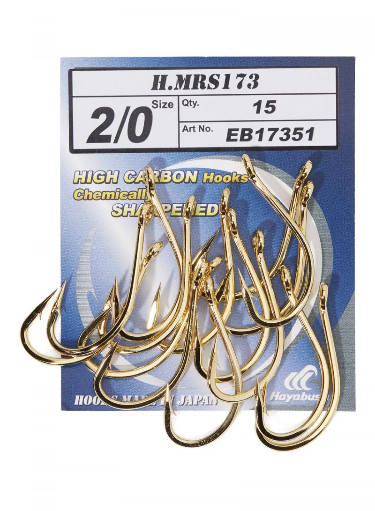 A HAYABUSA MRS 173 népszerű formájú pontyozó horog. A horog erős, vastaghúsú, de a vastagsága ellenére gyorsan hatol be a halak szájába mert a horog azon kívűl, hogy rendkívül hegyes még két oldalról lapított, valamint a horog hegye kb.az öble közepétől kifelé fordított. Az előbbieknek a nagyobb pontyoknál van jelentősége, mikor a csontos, kemény részeken kell a horognak akadnia. Az MRS173 ideális a nagyméretű csalikhoz, a pelletes és bojlis technikához, a horog szára hosszú, ezért tűzött kemény illetve puha csalikat és fűzött (a horog öbölbe kötve) csalikat egyaránt használhatunk.
