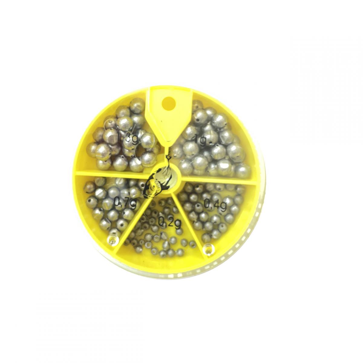 Gömbólom készlet 5 különböző méretű (0,2-0,4-0,7-1,0-1,3gr) ólmot tartalmazó ólomkészlet. Az úszós horgászat nélkülözhetetlen kelléke, amely az úszó besúlyozását teszi gyorssá és egyszerűvé, hiszen a megfelelő méretű fő ólmot már csak néhány sörét, vagy stíl ólommal kell kiegészíteni.