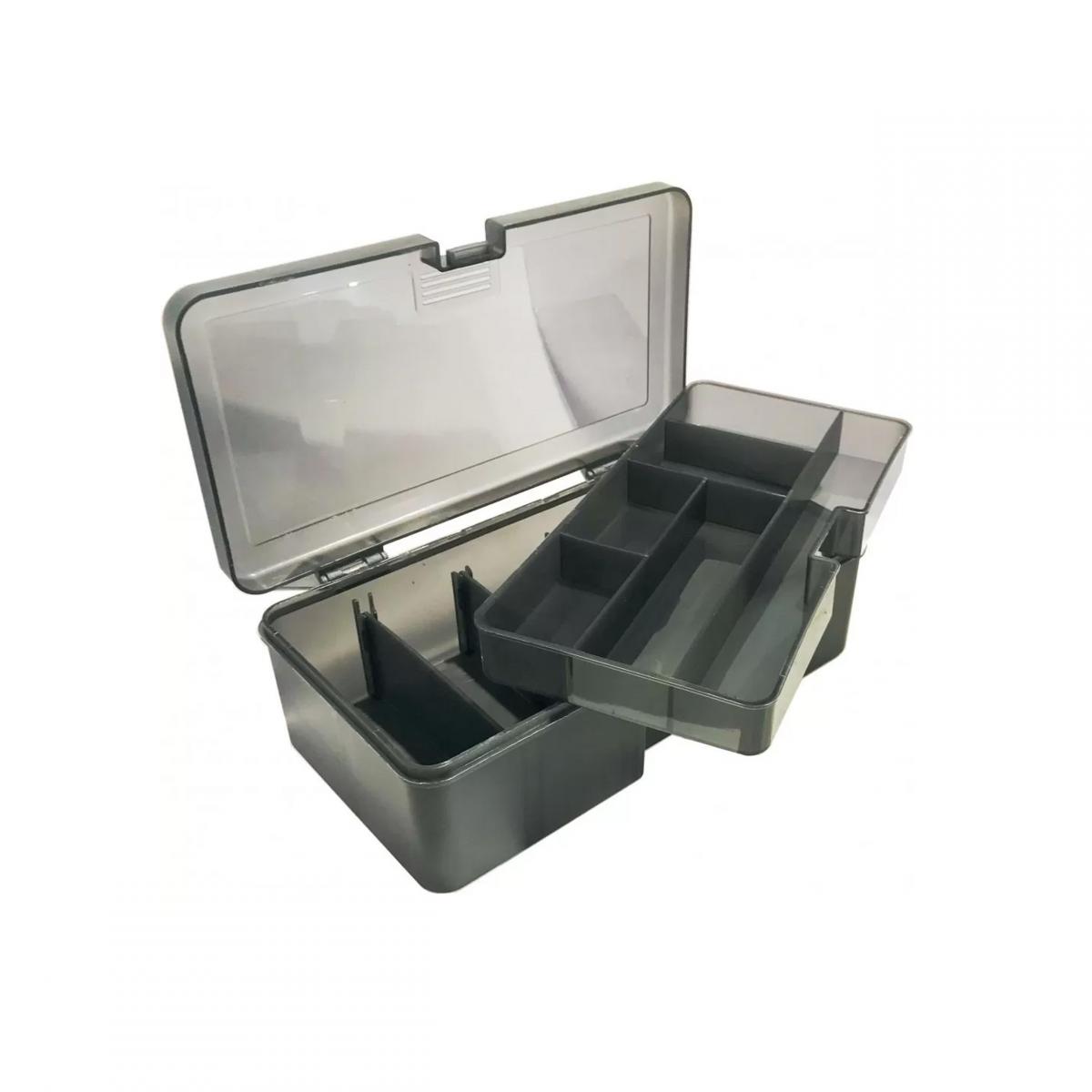 Yamashiro horgász doboz. Praktikus és könnyen szállítható doboz, az alsó rész 5 moduláris rekesszel van felszerelve a terjedelmes kiegészítők, mint zsinórok, fogók, ollók, stb. számára, míg a felső rekesz a kisebb kiegészítő-tartó 6 rekeszre van osztva, amelyek közül az egyik horgász úszók számára van fenntartva.