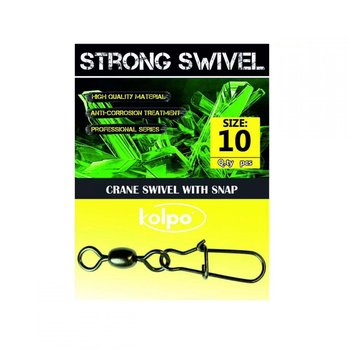 Kolpo CRANE erősített, csapos rendszerű forgó. A Kolpo szakemberei kiemelt hangsúlyt fordítanak arra, hogy csakis a legjobb minőségű termékeket kínálják a horgászok számára. A Kolpo forgó a békés és rablóhalas szerelékek nélkülözhetetlen kelléke. A forgó minősége és kivitele tökéletes, a terelhetősége is meg van adva, így garantáltan zsinórunk szakítószilárdságához legmegfelelőbbet választhatjuk ki. A kapocs alakja, kapcsolódási pontjai és csatlakozásai révén rendkívül erős, és megbízható.(ez nem fog véletlenül kikapcsolódni, maximum, ha roncsoljuk). A hengeres forgórész belsejébe csatlakozó csapok szintén nagyméretűek, hogy ne tudja kettétépni a hal fárasztáskor. 5 különböző méretben kapható. Terhelhetőségük: 2 – 30 kg, 4 – 25 kg, 6 – 18 kg, 8 – 12 kg, 10 – 10 kg. 1 csomagban 10 db forgó található.