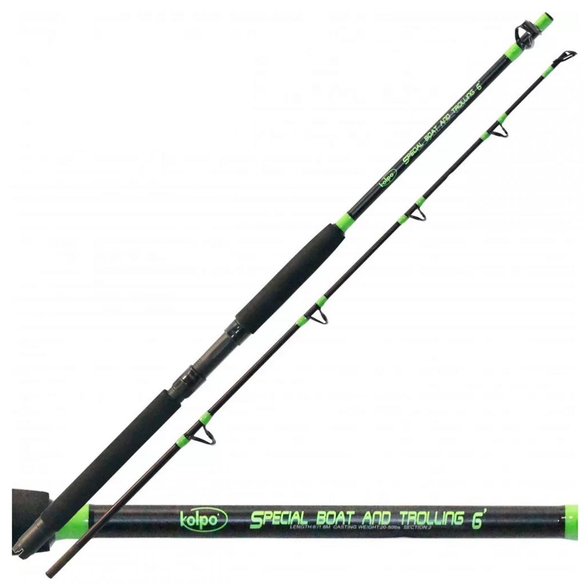 KOLPO SPECIAL BOAT AND TROLLING 1,8m 20-50lb. A SPECIAL BOAT kiváló minőségű alapanyagok felhasználásával készített bot. A Kolpo Special Boat(csónakos) változata 1,8m hosszúságban, 20-50lb dobósúlyban vásárolható meg. Az üvegszállal erősített bottest hatalmas terheléseket képes elviselni, melyben nagy segítséget nyújtanak a kiváló minőségű SIC gyűrűk és azok tökéletes elosztása a bot testen, így a nagy méretes csukák, harcsák vagy más ragadozók fárasztásánál hirtelen fellépő ostorcsapás szerű terhelés váltásokat is könnyedén képes elviselni. A gyűrűk erős, vastag keretben foglalnak helyet. Az orsótartó ABS-grafit alapanyagból készült és ütésálló. A bot két-részes, a markolata speciális EVA borítással van ellátva, hogy ne csússzon és kényelmes fárasztást tegyen lehetővé. A bot festése modern, de mégsem hivalkodó, a festést UV ellen is védelmet nyújtó lakkal van fedve.