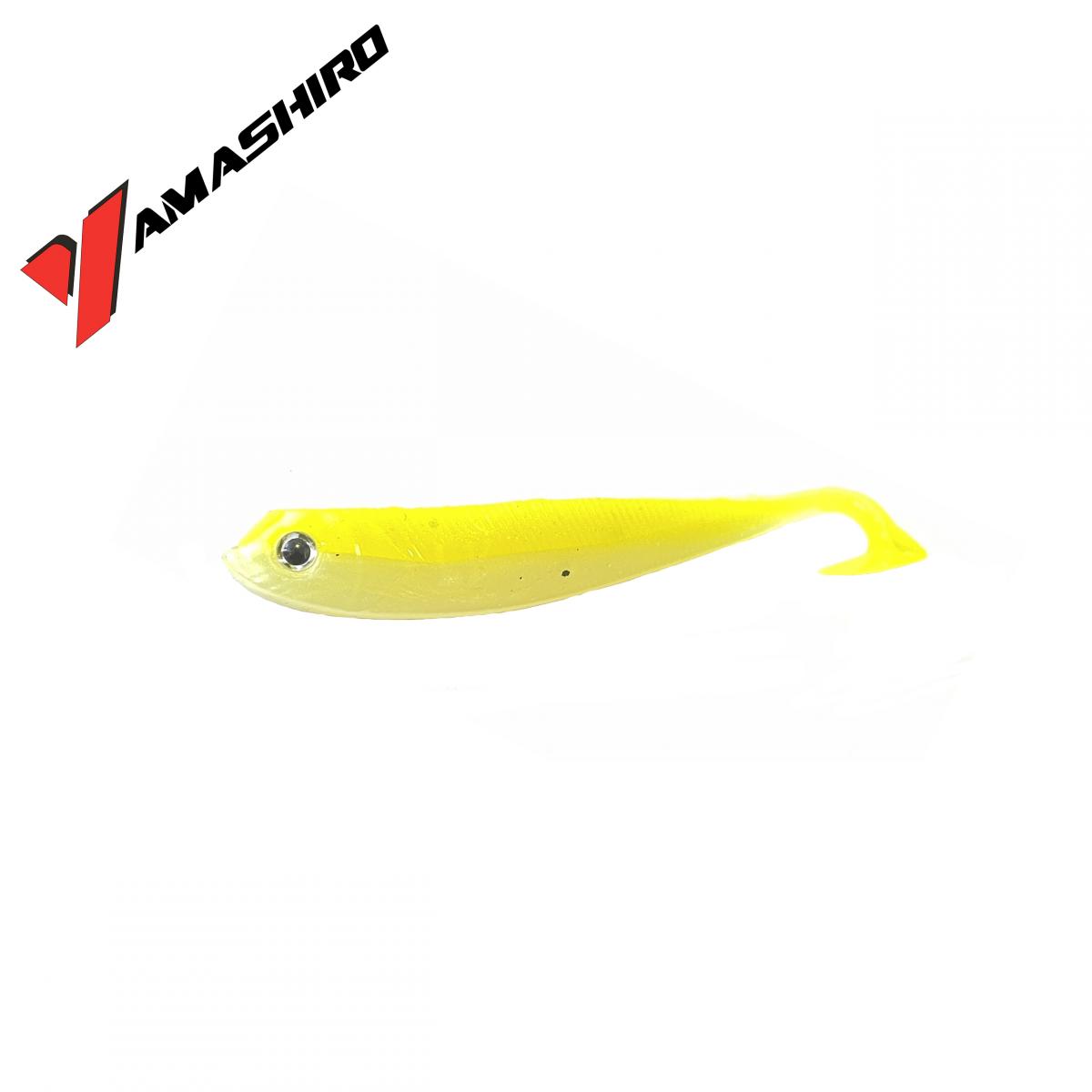 YAMASHIRO KALORY GUMIHAL 7,5G 10CM 4DB. A YAMASHIRO termékcsalád remek lehetőségeket kínál a finomabb plasztik csalikat kedvelő pergető horgászoknak. Anyaga kifejezetten lágy, ami nagyon jó vibráló, verető mozgást kölcsönöz neki, a korongban végződő farokkal. További előnye, hogy rugalmas, kevésbé hajlamos a sérülésre, szakadásra. A speciális kialakítású fejrész a titka a KALORY GUMIHAL fogósságának. Az ilyen alakú fejkialkítás célja, hogy a csalihal bukdácsoljon is a vízben, ami megnöveli fogósságát. A test anyaga rendkívül lágy ami a hosszú megnyújtott faroknak intenzív mozgást biztosít. Sügérre, csukára ,süllőre egyaránt kimagasló eredményt tudunk elérni vele.