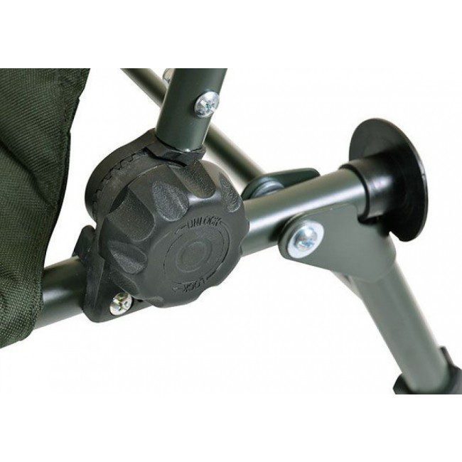 90kg teherbítrású, kis méretűre összecsukható horgász fotel, melynek háttámlája és ülőrésze is párnázott. Háttámlája több fokozatban állítható, lábai szintén teleszklóposan állíthatóak. A nagyméretű billenőtalpak süppedésmentesek.