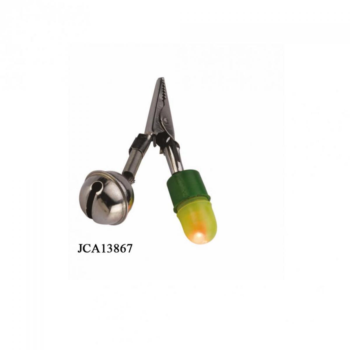 A bot spiccére csiptethető élénk hangú csörgős kapásjelző, jó kiegészítője a hagyományos zsinórra akasztható kapásjelzőknek is. A csipesz megkönnyíti a felhelyezést. A csörgő rugóra lett helyezve, így az egészen finom kapásokat is jelzi. A csörgőn lévő led világítás az éjszakai horgászat során nagyon hasznos, jelzi botunk helyzetét, és nem csak hallható, de már látható is a kapás jelzés.
