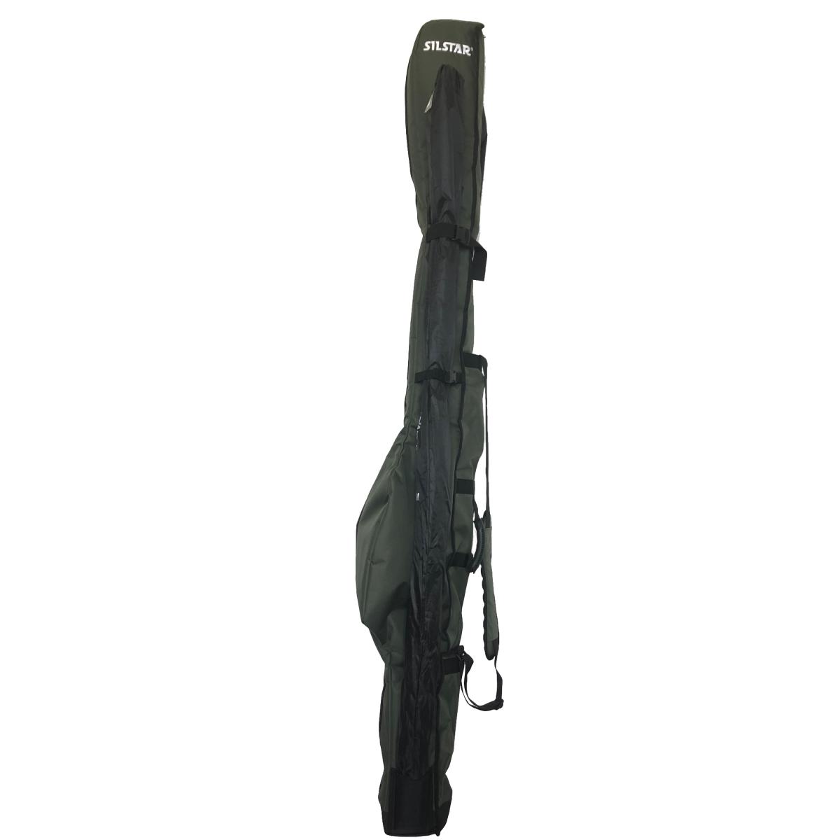 SILSTAR SLIM 3 BOTOS BOTTOK DUPLA 220CM. Csúcsminőségű bojlis bottok 3db felszerelt bojlis bothoz. Egyszerre 3db kompletten felszerelt botot, 2db bojlis merítőt, vagy spiccbotot stb. lehet benne elhelyezni és sérülésmentesen tárolni. A bottok minden tárolórekesze külön párnázott, így a 3db bojlis felszerelést úgy tárolhatjuk benne, hogy azok nem sérülhetnek. Különlegessége még, hogy horgászat után a nedves merítőt a bottok fogantyújánál direkt erre kialakított részbe tehetjük, ami úgy van tervezve, hogy a víz és páraelvezető nyílásnak köszönhetően abban a merítő megszárad és nem lesz fülledt szaga. A képeken is látható, hogy 3db 8000-s méretű nyeletőfékes, távdobó pontyozó orsóval felszerelt, nagy(0,50mm) keverőgyűrűs 3,9m 2 részes bojlis botok kényelmesen elférnek, miközben a külső tárolóban 1-1db bojlis merítő lett elhelyezve. A középső tároló külön cippzárral zárható rekesz, így biztosítva a jól elkülönített sérülésmentes elhelyezését a 3db kompletten felszerelt botnak. A bottok két oldalán elhelyezett 2db különálló merítő,(vagy más hasonló eszköz) tartó alsó része formázott kemény tok ezáltal a merítő nyele nem roppanhat össze, illetve ütődéskor nem sérülhet meg. A bottartózsák alsó része erős, vastag, kopásálló gumi, mely a bottokot védi a kopástól, vagy ha nedves földre tesszük le a beázástól. A bottok nagyméretű cipzárral van szerelve, így annak működése és élettartama hosszú ideig biztosított. A vastag és párnázott vállpánt, illetve a vastag és gumi alapanyagból készült hord-fül nagymértékben könnyíti meg a bottartózsák cipelését. A KÉPEKEN LÁTHATÓ ORSÓK, BOTOK, MERÍTŐK NEM A BOTTARTÓZSÁK TARTOZÉKAI, AZOK KÜLÖN VÁSÁROLHATÓAK MEG!!!